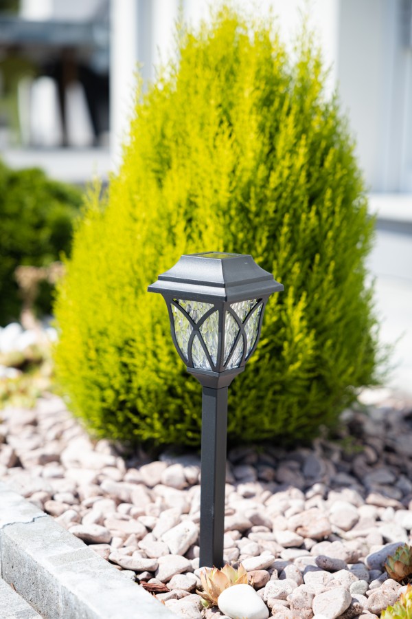 Vrtna solarna lampa unosi šarm i sigurnost u vaše dvorište, staze ili terasu. Klasičan dizajn lanternice u crnoj boji lijepo se uklapa uz različite stilove uređenja eksterijera, dok strukturirano staklo stvara efektne svjetlosne refleksije. Tokom dana puni se putem solarne energije, a sa prvim sumrakom automatski se pali i pruža nježno osvjetljenje bez kablova i troškova struje.